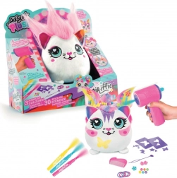 Dans cet ensemble unique, vous trouverez une peluche avec des cheveux, un aérographe à piles, trois feutres et trente pochoirs pour des possibilités de décoration illimitées. Après lavage selon les instructions, vous pouvez recommencer et créer un nouveau design.