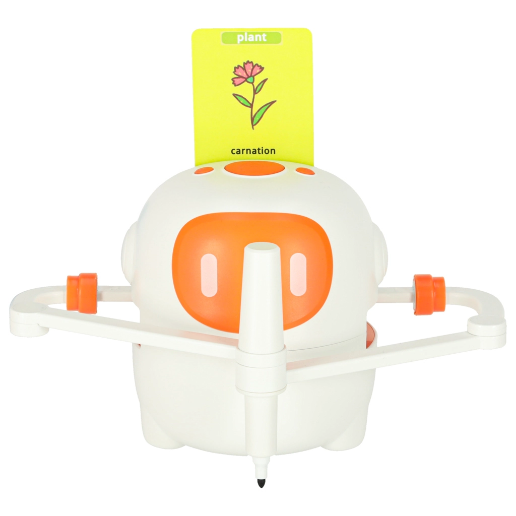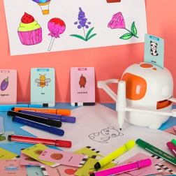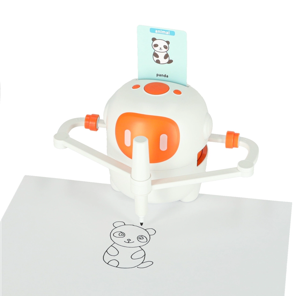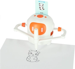 Avec 100 dessins pour un apprentissage pas à pas. Le robot trace les images de manière autonome, que les enfants peuvent ensuite colorier pour perfectionner leurs gestes.