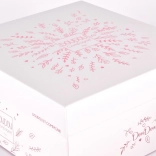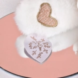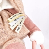 L’ours polaire en peluche porte un petit bonnet rose orné de rubans satinés avec des messages affectueux en français. Le corps est fabriqué dans une matière toute douce avec une délicate broderie de la marque Doudou. L’ours offre diverses stimulations pour le développement des sens et de la motricité fine :