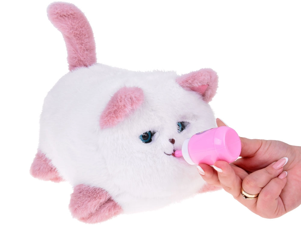 - Effets interactifs : miaulements, ronronnements, bruits de succion lors de l’alimentation