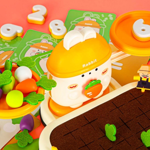 L’ensemble engage l’enfant dans un jeu stimulant où il plante et retire des légumes et les place sur la balance. Ce divertissement développe la patience, les réflexes et aide à surmonter de petits échecs. Idéal pour développer la coordination œil-main et les compétences motrices.