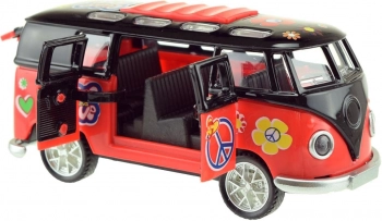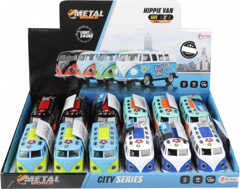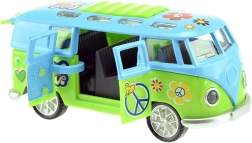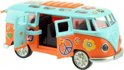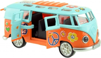 Découvrez un mini autobus rétro qui attire l’œil par son style « hippie » coloré et surprend par ses effets une fois lancé. Il suffit de le tirer en arrière et de le relâcher – le mécanisme à inertie assure une conduite vive, tandis que les lumières et le bruit du moteur amplifient l’expérience.