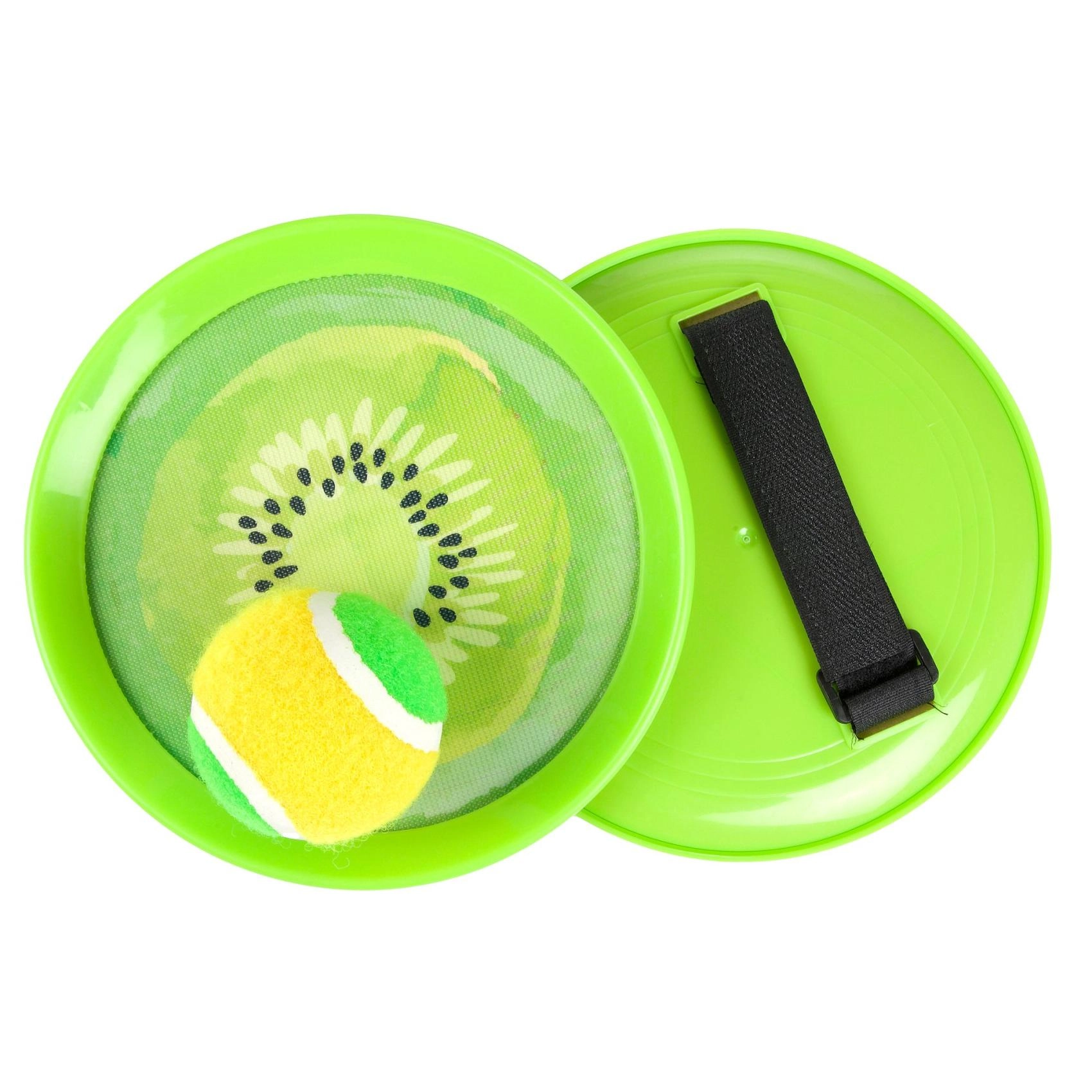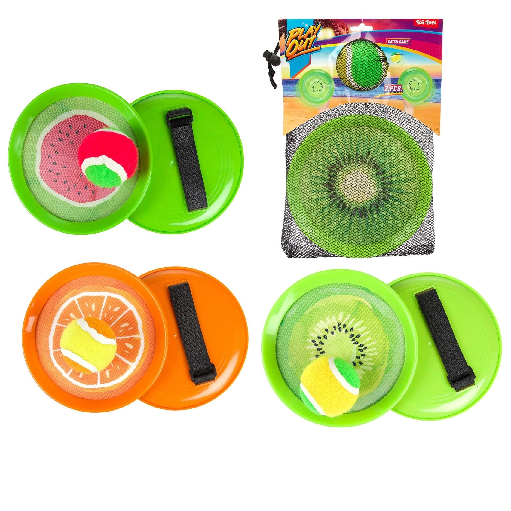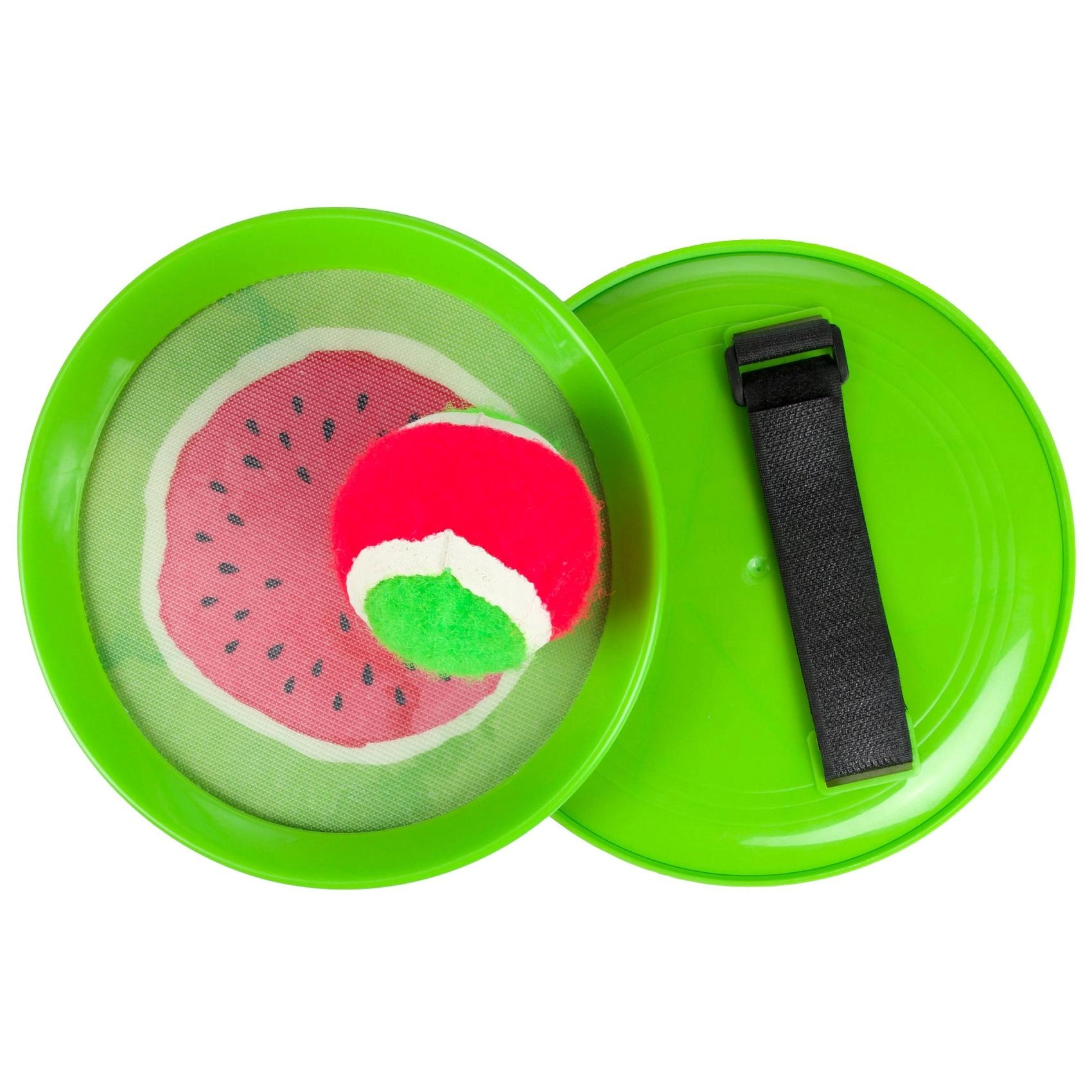 Le célèbre jeu de capture avec balle à scratch au design fruité apporte beaucoup de rires et de mouvement pour les enfants et les adultes. Les palettes légères en plastique avec sangle réglable tiennent bien en main et la balle s’accroche facilement au scratch – idéal pour les débutants et les plus jeunes enfants.