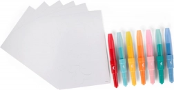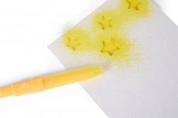 Grâce aux feutres à souffler, les enfants peuvent créer des images selon leur imagination ou utiliser les pochoirs fournis pour bien démarrer.