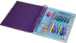 - livre de coloriage, crayon, gomme, crayons de cire, feutres et pochoirs