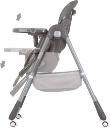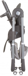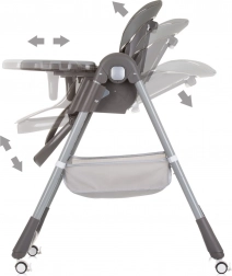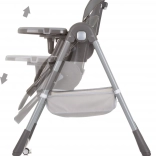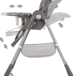 La chaise est équipée d’un harnais de sécurité à 5 points avec des coussinets d’épaule doux pour la sécurité et le confort de votre enfant. Le plateau double pour les aliments facilite l’entretien, le plateau supérieur pouvant être retiré facilement pour le nettoyage. Le plateau de base est équipé d’une barre en T de protection et peut être avancé ou reculé sur 4 positions.