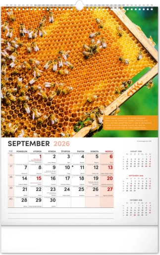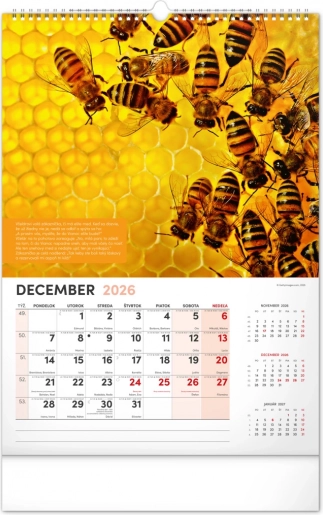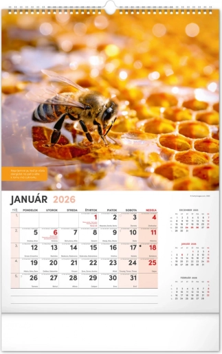Le calendrier comprend un calendrier tchèque avec les jours nommés et les fêtes, les jours commémoratifs et les horaires de lever et de coucher de soleil. Grâce à cela, vous aurez toujours une vue d'ensemble et un plan à portée de main et vous saurez quand est le moment idéal pour vous rendre à la ruche.