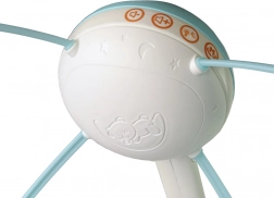 Le mobile peut être fixé au lit comme à la poussette. L’image lumineuse projetée attire l’attention de l’enfant. Le mobile offre une réglage du volume et, grâce à son support réglable, convient à la plupart des lits.