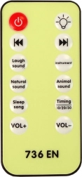 Le contrôle est assuré par une télécommande, qui règle l’éclairage, le volume et les sons. Les fonctions comprennent :