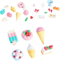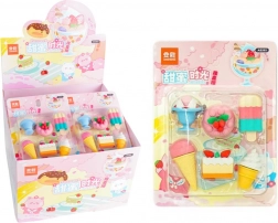 Dans cet ensemble attrayant, vous trouverez des gommes rappelant des glaces, des biscuits, des desserts et des muffins – chacune soigneusement détaillée et aux couleurs vives.