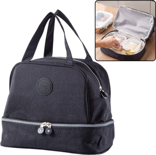 Le compartiment inférieur principal est très spacieux et peut facilement accueillir des boîtes-repas, des fruits, des boissons ou une thermos. La poche supérieure est idéale pour les petits objets comme des barres, des yaourts ou des serviettes, gardant le contenu organisé et facilement accessible.