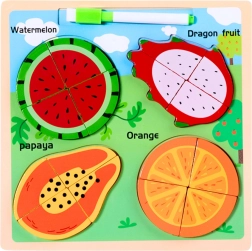 Le puzzle éducatif en bois à motifs de fruits est un jouet parfait pour développer la coordination et la pensée logique des enfants. Il comprend quatre magnifiques fruits : pastèque, pitaya, papaye et orange. Chaque pièce est divisée en plusieurs parties à assembler, offrant à la fois défi et amusement.