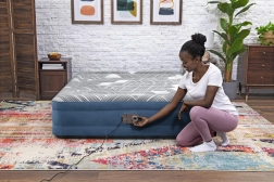 La pompe électrique permet de gonfler le matelas en seulement quatre minutes.