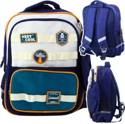 Le sac à dos scolaire se distingue par deux compartiments spacieux, y compris le compartiment principal avec une cloison pour organiser facilement livres et cahiers. Sur le devant se trouve une autre poche et deux poches élastiques sur les côtés, idéales pour une bouteille d'eau.