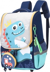 Le sac à dos scolaire est doté d'une grande poche principale, idéale pour ranger des livres, cahiers et fournitures scolaires. Sur le devant, se trouve une petite pochette amovible avec un motif de locomotive, qui peut servir de trousse indépendante ou de décoration. Un pendentif décoratif avec un dinosaure ajoute du charme et du caractère au sac à dos.