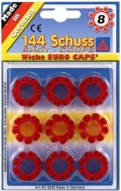 Le grand pack de capsules en couronnes assure suffisamment de tirs pour tout un après-midi de jeux – sans rechargements fréquents.