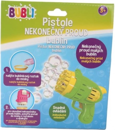 Ce pistolet à bulles est idéal pour les enfants qui aiment jouer dehors par temps chaud. Une simple pression suffit pour créer de magnifiques et interminables nuées de bulles qui captiveront chaque enfant.