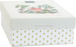 Ce doudou est conçu pour être exploré et câliné, ce qui divertit et apaise l’enfant. Il favorise le développement sensoriel et la motricité fine. Il est présenté dans une élégante boîte cadeau servant de coffret souvenirs pour conserver des photos et autres petits témoignages liés à la naissance et à l’évolution de l’enfant. La collection de jouets « Mon jardin » s’inspire de la nature, tant par ses couleurs que par les noms des jouets, évoquant diverses plantes du jardin.