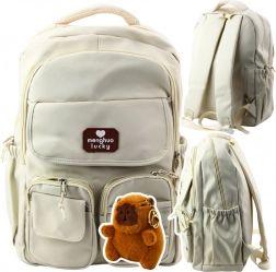 Sac à dos scolaire urbain avec capybara beige