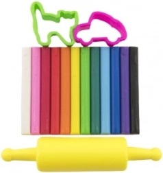12 pièces de pâte à modeler, 2 emporte-pièces, 1 rouleau
