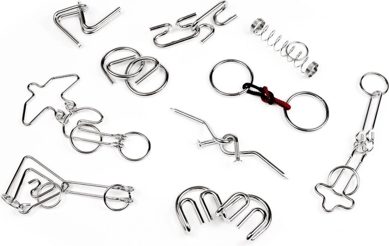 Découvrez la magie des énigmes avec cette collection de casse-têtes métalliques, offrant des heures de divertissement et de stimulation mentale. Chacun des dix casse-têtes est unique et requiert une solution différente, garantissant une fascination sans fin et une grande variété :