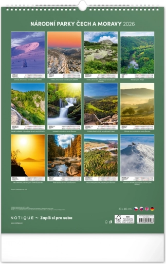Découvrez la beauté des parcs nationaux tchèques et moraves tout au long de l’année. Ce calendrier mural propose des photographies à couper le souffle de la nature et est au format vertical.