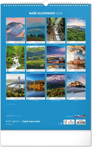 Le calendrier mural Notre Slovaquie 2026 est un choix idéal pour les amateurs d’architecture et de nature slovaques. Il contient des photographies saisissantes capturant la beauté des monuments slovaques et offre une fonctionnalité pratique grâce à un calendrier détaillé.