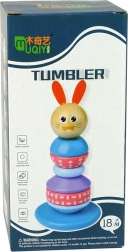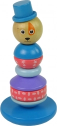Un jouet en bois classique pour enfants sous forme de tour d'équilibre garantit un sourire sur le visage de votre enfant. Il comprend un ensemble coloré de 6 anneaux arrondis de différentes tailles et motifs. Au sommet de la pyramide se trouve la tête d'un adorable chien et à la base, un piquet pour enfiler les pièces, dont la forme semi-circulaire simule l'équilibre et rend difficile l'ajustement de l'anneau sur le piquet.