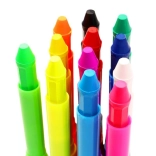 Dans l'ensemble, vous trouverez 12 marqueurs dans différentes couleurs intenses, permettant de créer différents motifs et détails sur le visage, les mains ou le corps. Grâce à la palette riche de couleurs, on peut réaliser des compositions réalistes, féériques ou abstraites - la seule limite est l'imagination enfantine.