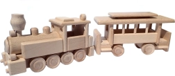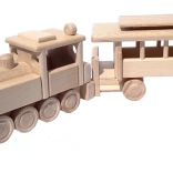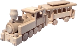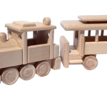 Le train est fabriqué en hêtre massif et traité uniquement à la cire et au polissage. Il conserve le veinage authentique du bois, est doux au toucher et sûr pour les petites mains.