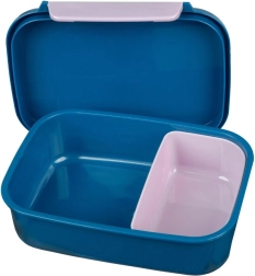 Le large clip de fermeture garantit une ouverture aisée et une fermeture sûre, idéal pour les petites mains. À l’intérieur, vous trouverez un compartiment amovible qui facilite le rangement séparé de différents aliments, comme des fruits, des biscuits ou des sandwichs.