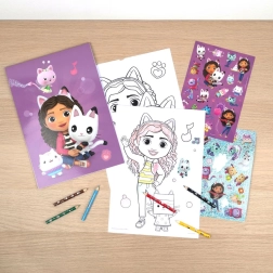 Ce kit créatif permet à l'enfant de plonger dans l'univers de Gabby's Dollhouse et de développer sa créativité. Les 30 pages à colorier avec des scènes et personnages préférés stimulent l'imagination des enfants. Le coffret comprend également six crayons de couleur et une planche d'autocollants, permettant aux enfants d'ajouter une touche personnelle à leurs créations.