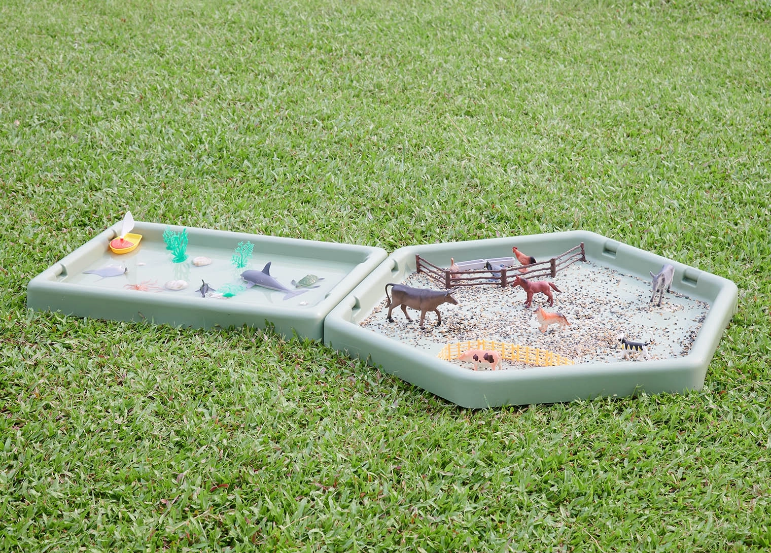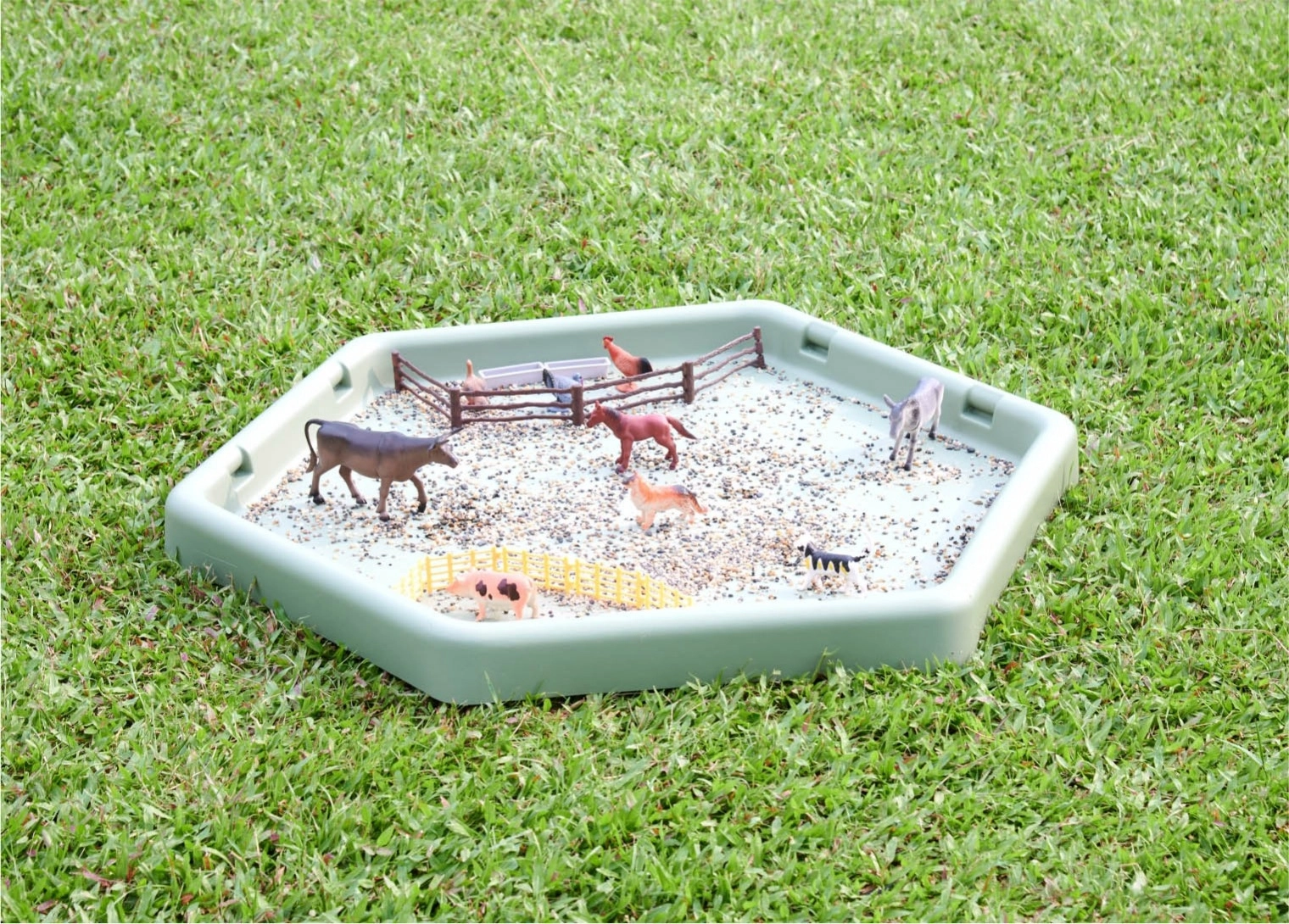 Les bords élevés empêchent la dispersion du sable, de l’eau ou d’autres matériaux, ce qui facilite le maintien de l’ordre pendant le jeu. Elle offre un fort potentiel pour développer la motricité, la perception sensorielle et l’exploration du monde qui nous entoure.
