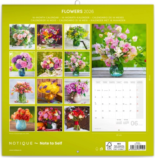 Offrez-vous la beauté de fleurs fraîches en photos qui ne fanent jamais, avec le calendrier de notes pour l’année 2026. Il propose un calendrier clair, les jours fériés importants et de l’espace pour des notes en six langues.