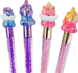 Stylo gel à encre noire et au look coloré, orné d’une figurine de licorne rotative, alliant fonctionnalité pratique et charme unique. Il tient parfaitement en main grâce à sa longueur de 17 cm et se transporte facilement dans une trousse, une pochette de maquillage ou un sac à main.