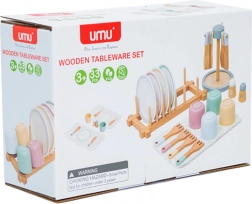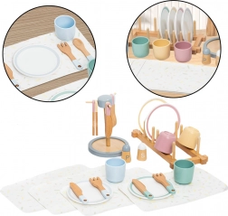 Avec cet ensemble de vaisselle en bois, les enfants peuvent jouer à la maison, au restaurant ou organiser des goûters avec des amis. Chaque élément est soigneusement fabriqué à partir de bois de haute qualité, sûr et durable, résistant à une utilisation intensive. On trouve des assiettes, bols, tasses, cuillères, fourchettes, serviettes, condiments et un support pour vaisselle.