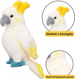 Le perroquet est fabriqué en peluche douce et agréable au toucher, sûre pour les enfants. Grâce à son garnissage adapté, le jouet tient debout, ce qui renforce son attrait comme décoration ou élément éducatif dans des coins thématiques de sciences naturelles.