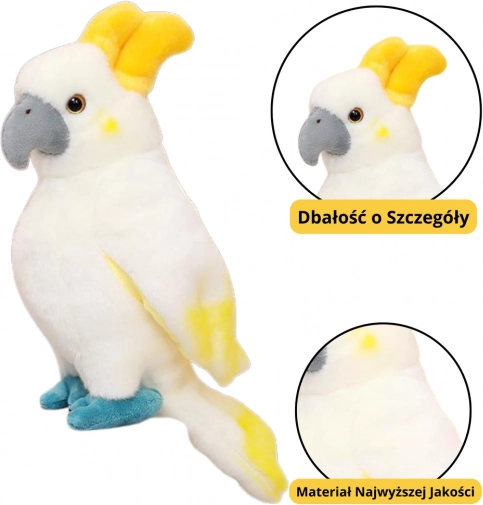 Le cacatoès en peluche est un jouet magnifiquement réalisé, aux valeurs esthétiques et éducatives, idéal comme décoration et doudou.