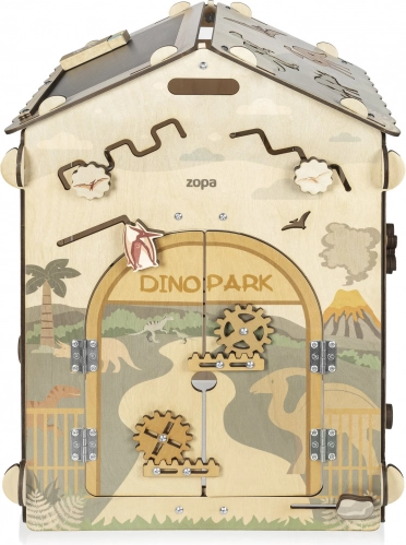 Découvrez un monde préhistorique plein de jeu et d’apprentissage – la grande maisonnette d’activités en bois sur le thème Dino Park développe la motricité fine, la pensée logique et la créativité. Les enfants y trouveront un volcan lumineux, un interrupteur mécanique, un puzzle 3D de dinosaures, des images rotatives, des labyrinthes, des fermetures éclair et du laçage. Elle inclut un tableau noir pour craies et une réalisation sécurisée en bois de qualité.