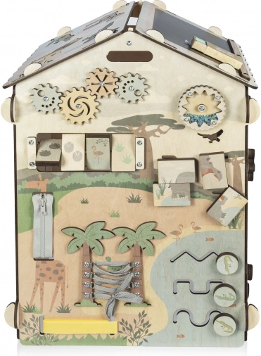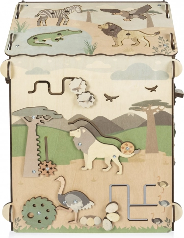 La grande maison safari est plus qu’un jouet – c’est une cachette, une base et un espace de jeu. Grâce aux activités pensées sur chaque face, les enfants entraînent la coordination œil-main, la dextérité des doigts et découvrent le monde animal de manière ludique. La structure en bois robuste assure sécurité et longévité.