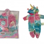 Superbe combinaison licorne pour poupées de 40 à 43 cm. Cet accessoire de mode offre des couleurs arc‑en‑ciel et une corne dorée, garantissant un jeu stylé pour toutes les petites princesses.