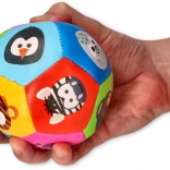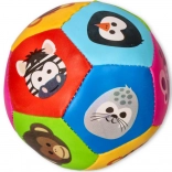 Cette balle douce et colorée avec animaux est un premier jouet idéal pour les tout-petits. Les panneaux multicolores aux motifs joyeux (zèbre, tigre, manchot, petit singe et autres) invitent à l’exploration et stimulent l’attention visuelle. Grâce à sa surface textile douce et à son rembourrage léger, la balle est sûre pour lancer, attraper et faire rouler en intérieur.