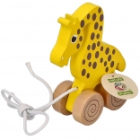 Cette girafe à tirer jaune en bois de qualité est un compagnon idéal pour les petits explorateurs. Grâce à ses dimensions compactes 14 × 11 × 4,5 cm, elle est facile à manier, tandis que le cordon de 60 cm offre une portée confortable aux enfants. Les bords lisses et la conception robuste garantissent une utilisation en toute sécurité.