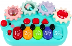 Dans la partie supérieure du piano se trouvent des engrenages rotatifs que l’enfant peut faire tourner, ce qui exerce la coordination œil-main et la motricité fine. Grâce à son format compact, le jouet est idéal à la maison comme en voyage. Il est fabriqué à partir de matériaux sûrs et présente de douces couleurs pastel.