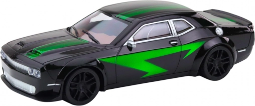 Voiture de sport noire à propulsion avec lignes vertes