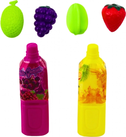L’ensemble comprend également des fruits colorés et des bouteilles de boissons, qui permettent aux enfants de créer leurs propres recettes et desserts. Ce set stimule la créativité, entraîne la motricité fine et encourage le jeu avec des scènes du quotidien.