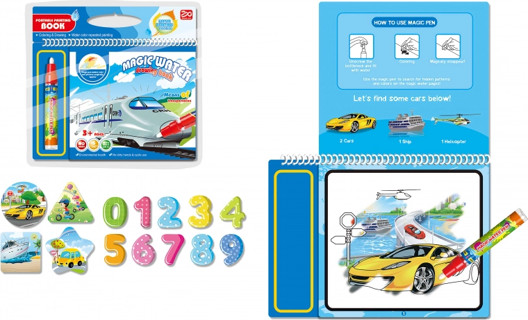 Découvrez la joie de la création avec la peinture à l’eau sur le thème des moyens de transport. Explorez un monde haut en couleur sans désordre grâce à des coloriages uniques qui s’activent avec de l’eau.