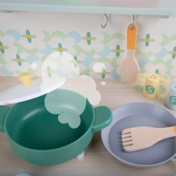 Cette cuisine en bois est conçue pour les enfants à partir de 3 ans et offre de superbes détails esthétiques dans des couleurs pastel. Elle stimule l’imagination, la motricité et les compétences sociales des enfants. Fabriquée avec une grande qualité et une attention minutieuse à chaque détail. Le pack comprend également des accessoires de cuisine que les enfants peuvent utiliser pour jouer à cuisiner et rejouer des situations du quotidien.