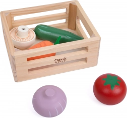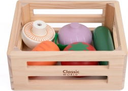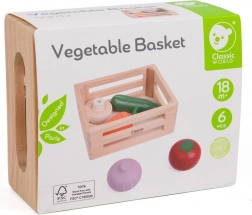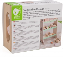 Le panier en bois avec légumes de la marque Classic World offre aux enfants d’infinies possibilités de jeu créatif en cuisine ou au magasin. Les éléments en bois représentant différents types de légumes stimulant l’imagination et les compétences sociales des enfants.