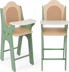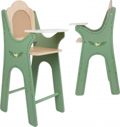 Chaise pour poupées en bois au style vintage avec dossier en rotin ! Cette élégante petite chaise apporte une touche d’authenticité aux jeux de soin des poupées. Dans des tons verts et ornée de délicats motifs floraux, ce produit est l’accessoire parfait pour tout jeu d’enfant.